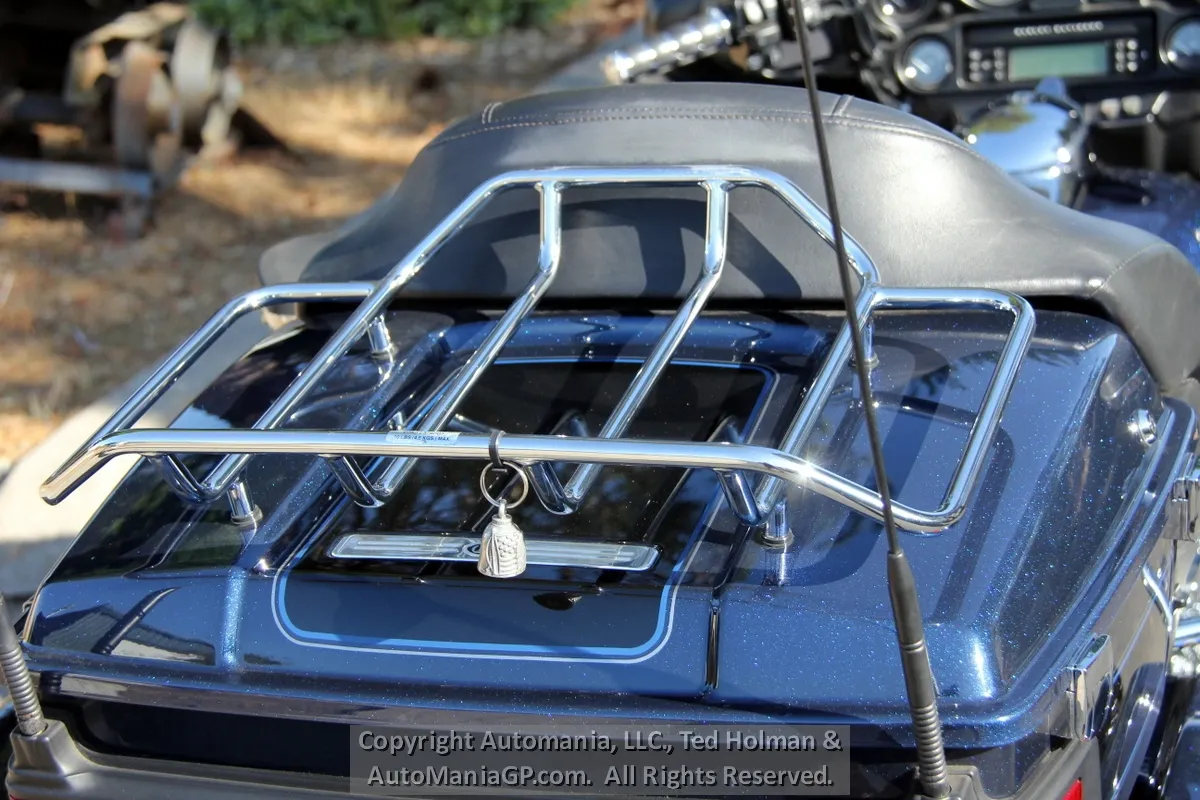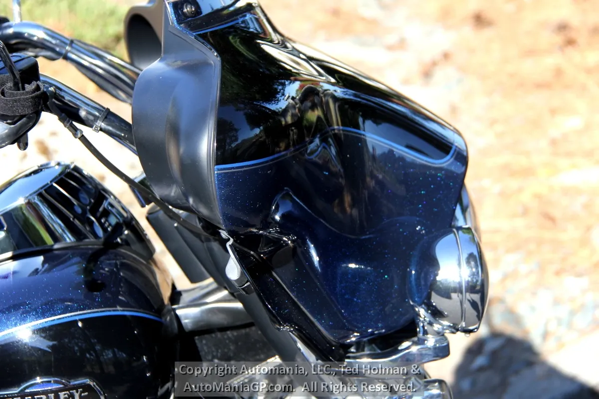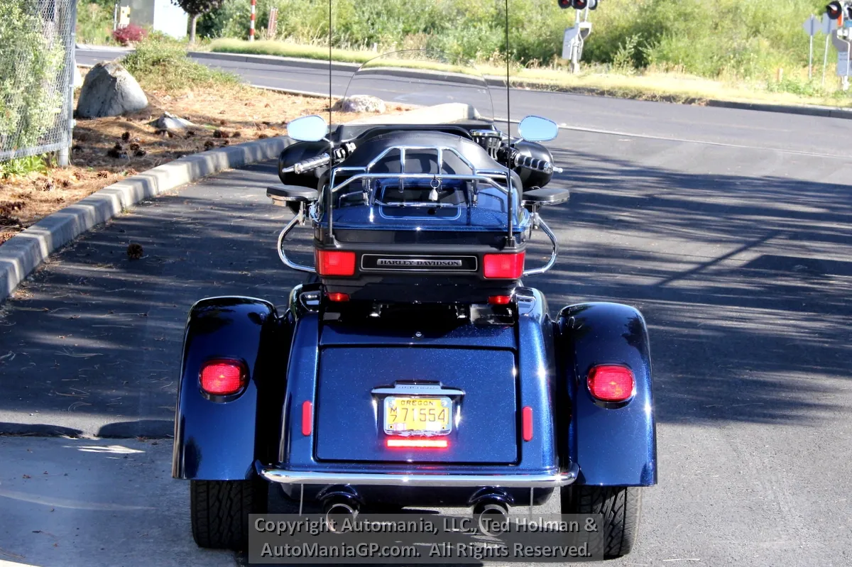 The Tri Glide came equipped with the Bat Wing Fairing, Hard Cases and Travel Pak. There is a 4-Speaker 20-Watt per Channel Harman/Kardon Audio System that provides great sounds at cruising speeds for both the driver and passenger. In addition Harley included an advanced Audio System with CD/MP3 player and CB/Intercom. All this and Electronic Cruise Control makes for the perfect long distance Touring platform for two up comfort and luggage capacity.