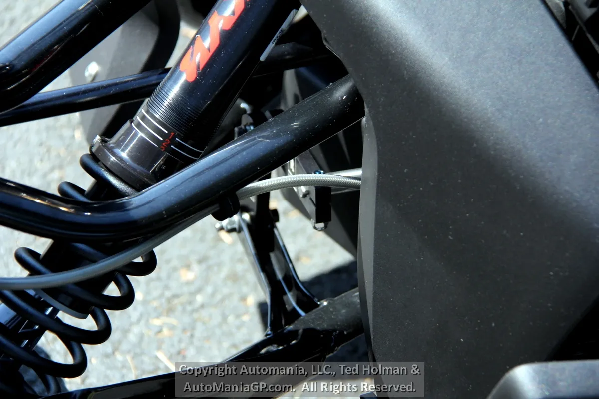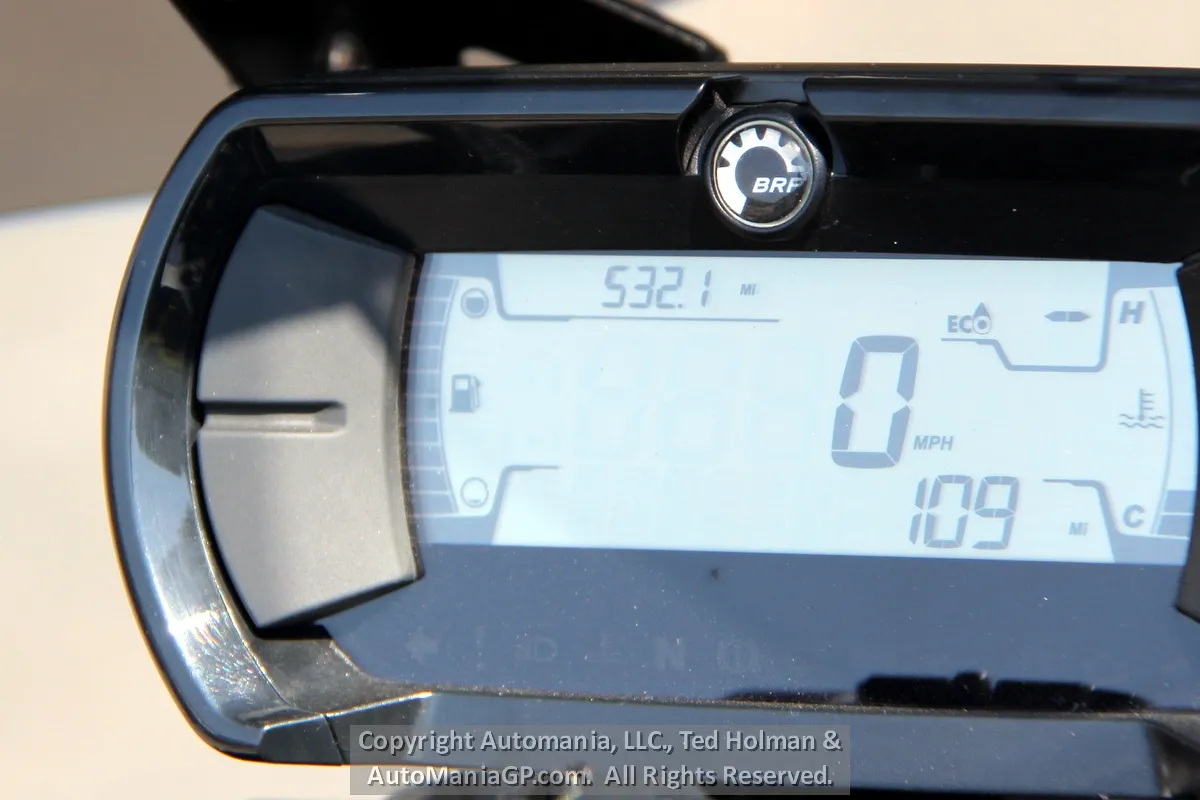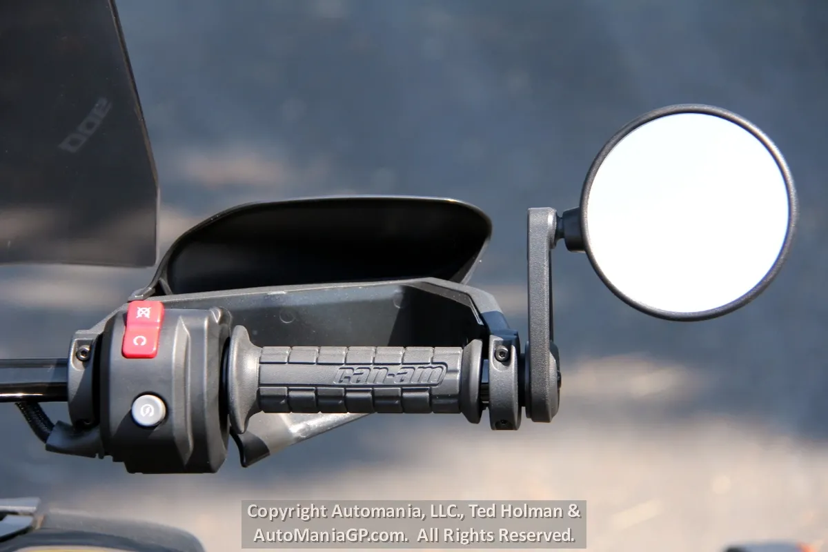 The base Ryker is possibly what everyone expects a 3-Wheeler to be, for those who struggle with kick stands and stop lights. The Rally though can be incredibly entertaining. It does have a CVT Transmission which sounds like a single speed as it accelerates, leaving the left handle bar seemingly naked. The KYB Coil Over Shocks and Springs have adjustment for Pre-Load, the 3 Switchable Electronic Ride Modes (Eco, Sport and Rally) dial up less or more traction control and ABS monitoring along with engine power limits. The only Electronic device that cannot be adjusted is the Stability Control System. When one of the front tires lifts while corning, it will jump in to bring that party to an end. What all of these Ride Modes to is offer something to both a new and beginning riders and someone who might enjoy pushing the envelop at a stop sign or a fire road (not that anyone would recommend that).