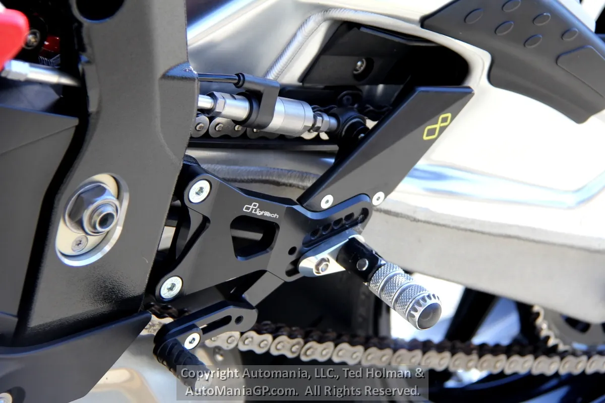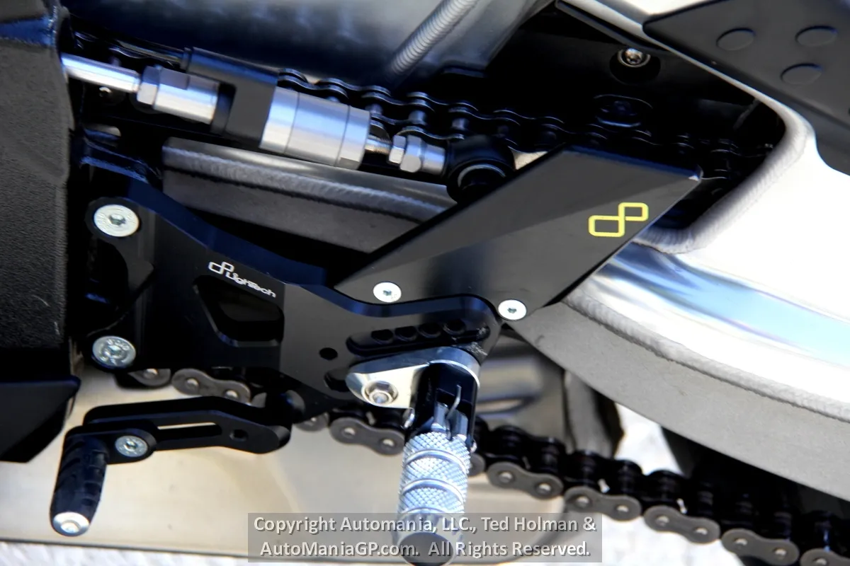 Crazy right? All the possible riding encounters that could have happened and it tips over coming out of a trailer. But the bike has a set of beautiful set of Billet Levers and Rear Sets from LighTech and Billet Guards from Vortex as you can also see in the images. There are also Spools on the rear swing arm. All nicely done but not over the top.