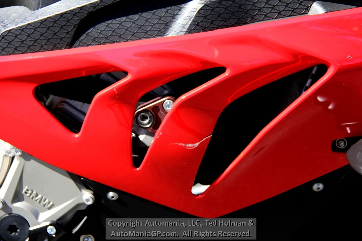 This 2013 S1000RR was bought by a local older rider who envisioned doing limited track days, even sport riding on the street. He never had time to make to the track due to work and when he finally retired about two years ago he had lost the steam to for the adventure. It was kept fanatically clean and serviced by Dave Mahue while at Hansen’s BMW and now at his shop, Precision Motorad in Medford, Oregon. New tires were installed, but while being unloaded at home, the bike tipped over breaking the right side front faring and rear cowl (as can be seen in the images). The stock muffler took a minor hit but a replacement stock can is supposed to come with the bike.