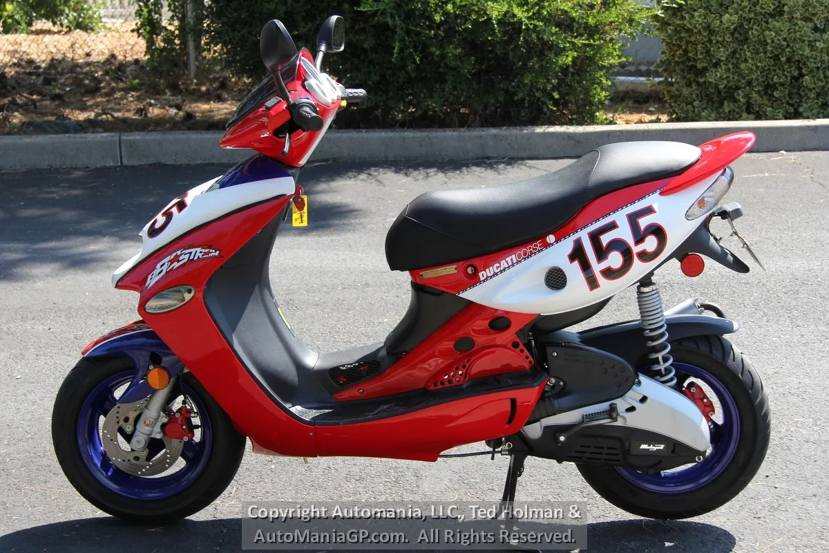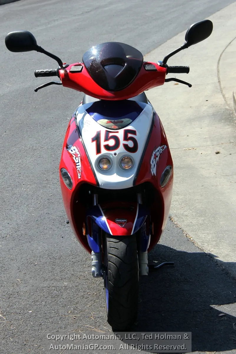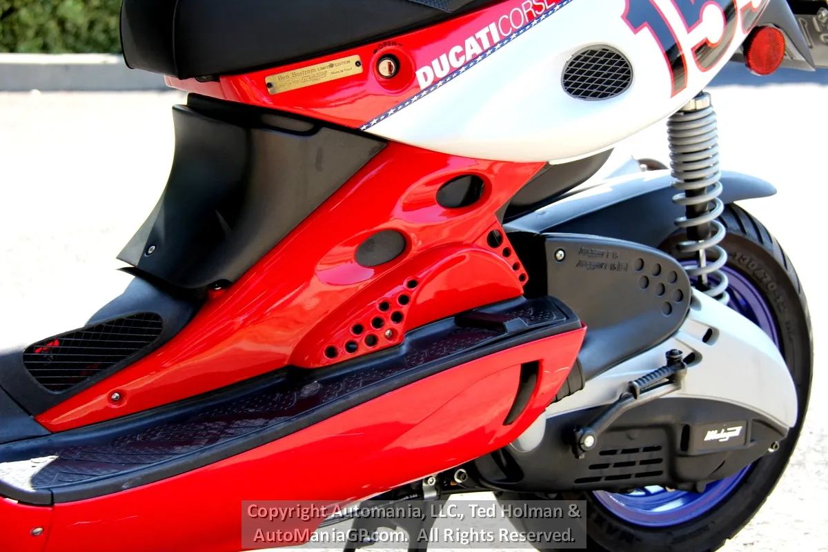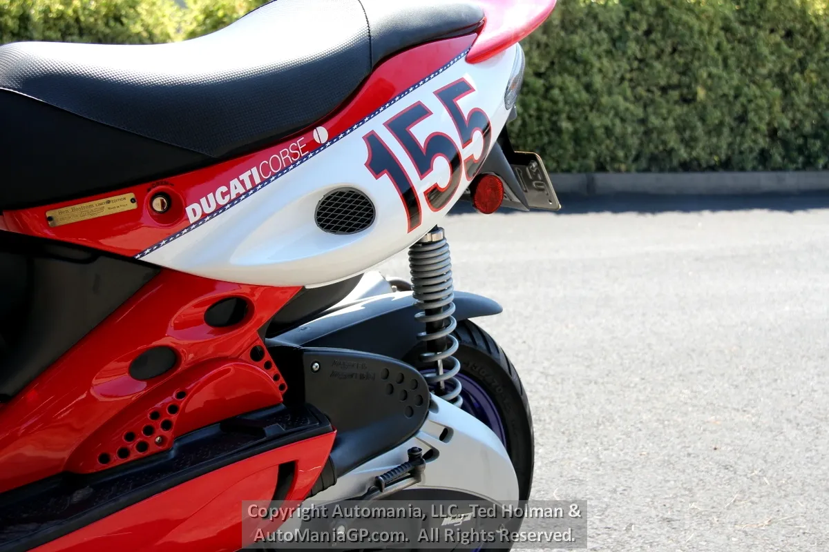 In 1996, Malaguti introduced the F-15, a scooter was instantly popular in Italy. Fast forward 16 years and in 2002 they partnered with Ducati to create the Ben Bostrom 155 Replica. Again, it was intended as a Ducati race team pit bike built in numbers that Ducati fans could own as a rare Ducati accessory.