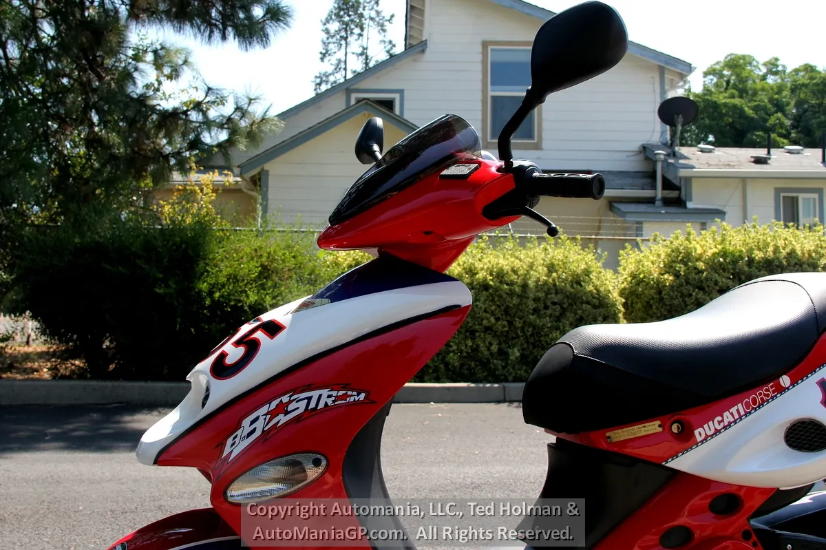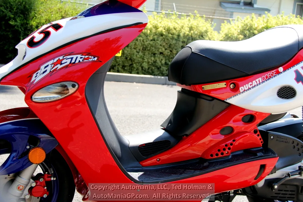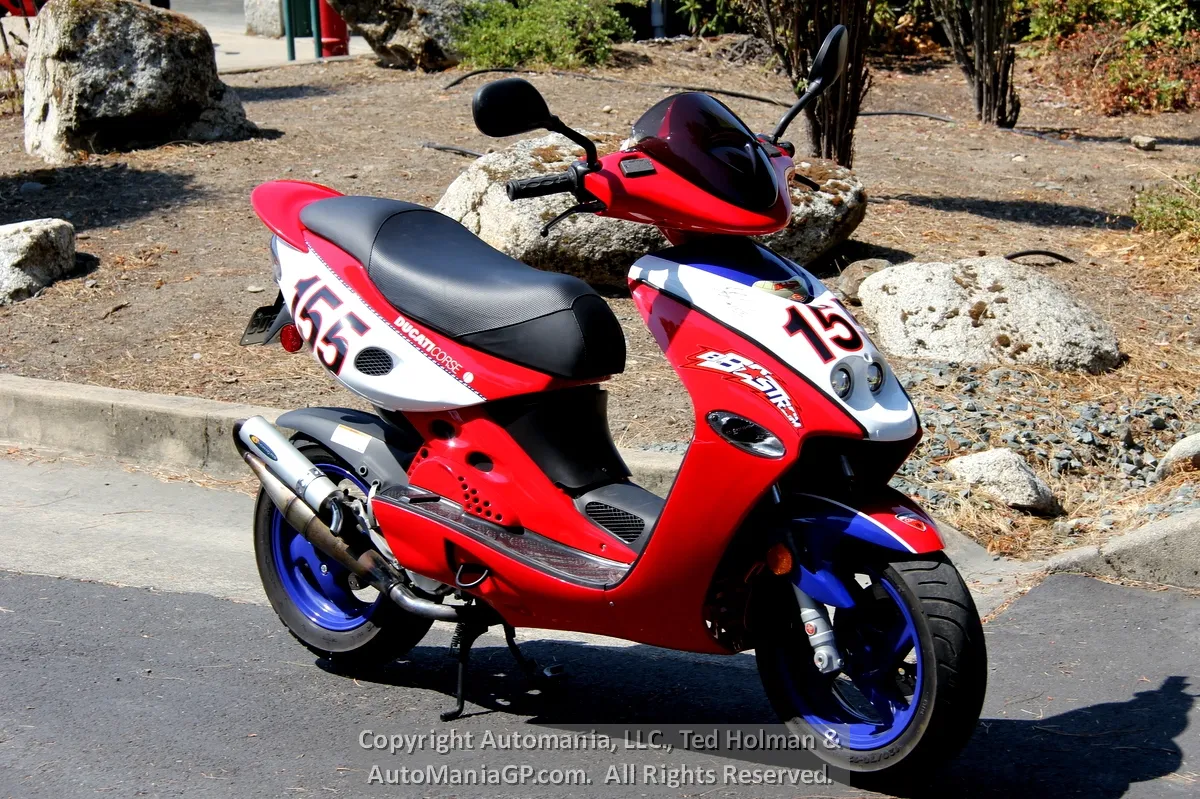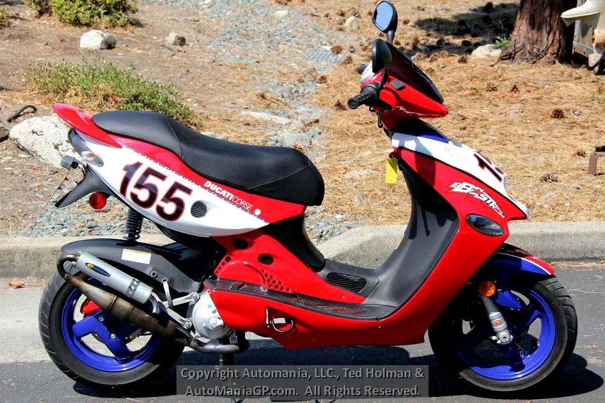 In 1996, Malaguti introduced the F-15, a scooter was instantly popular in Italy. Fast forward 16 years and in 2002 they partnered with Ducati to create the Ben Bostrom 155 Replica. Again, it was intended as a Ducati race team pit bike built in numbers that Ducati fans could own as a rare Ducati accessory.
