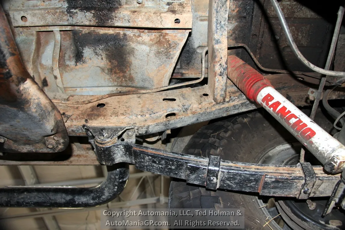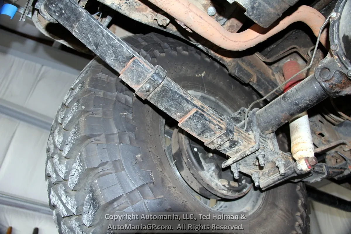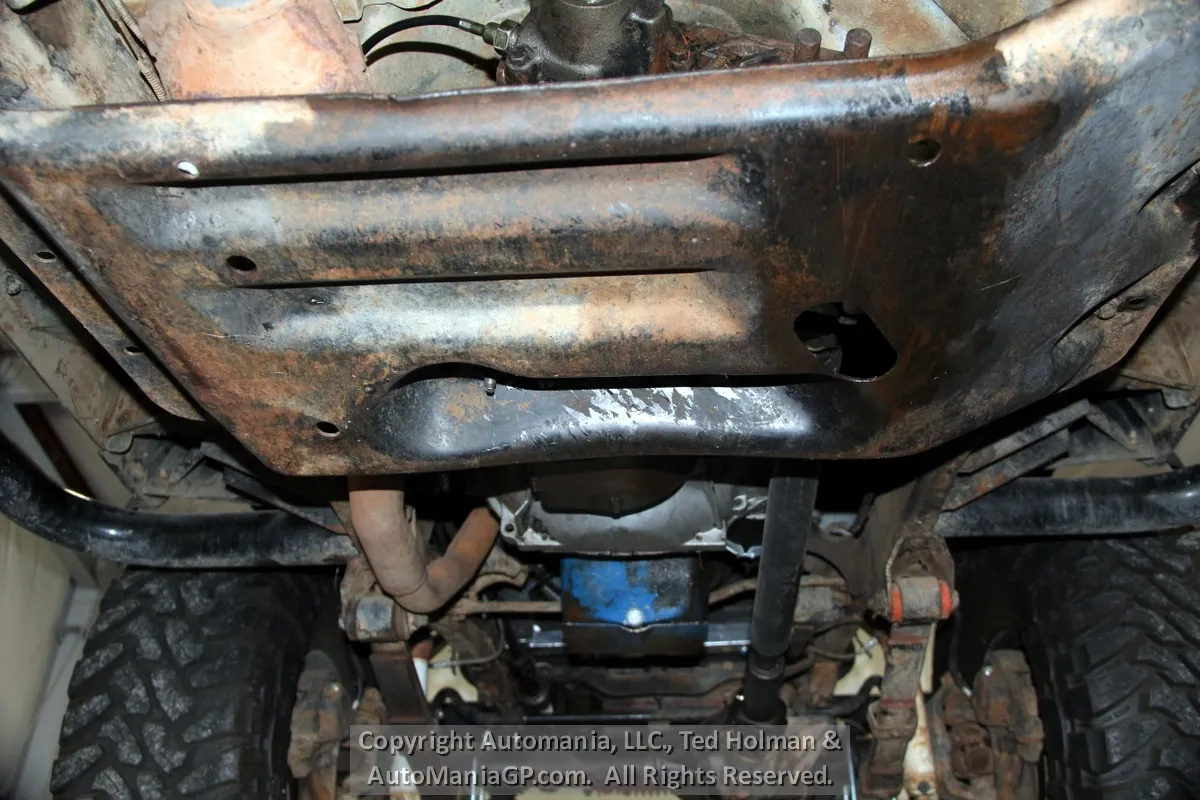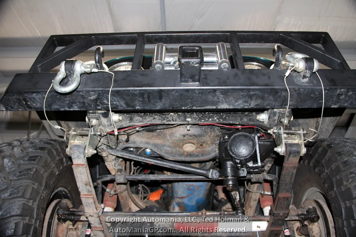 The engine is the AMC 258 6-Cylinder and a 4-Speed Manual Transmission and 2-Speed Transfer Case with 2H and Neutral along with Warn Locking Hubs. Wheels and tires look almost new and 35’s Toyo’s are mounted. The 4WD was checked out here at the shop and everything worked as expected. Nice Hubs!