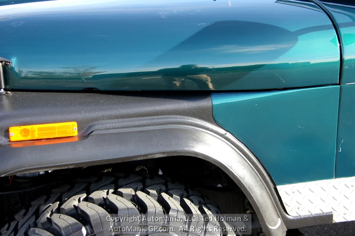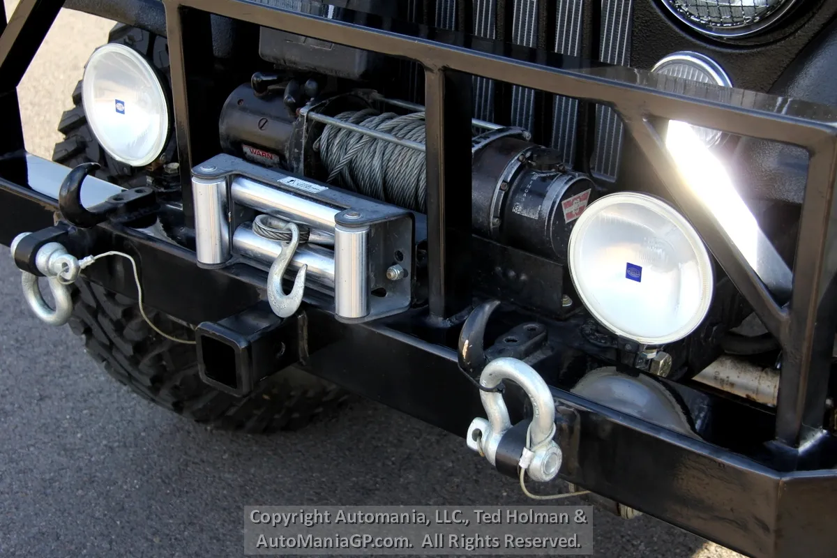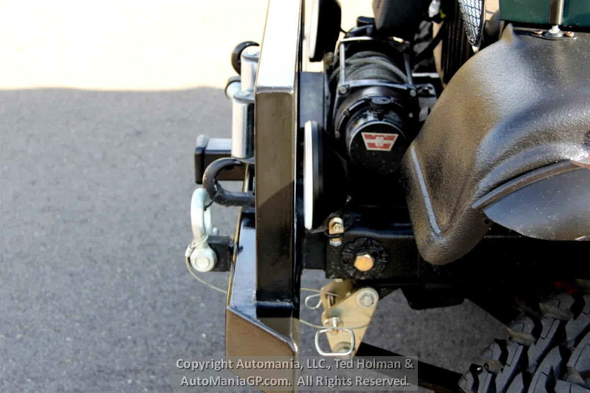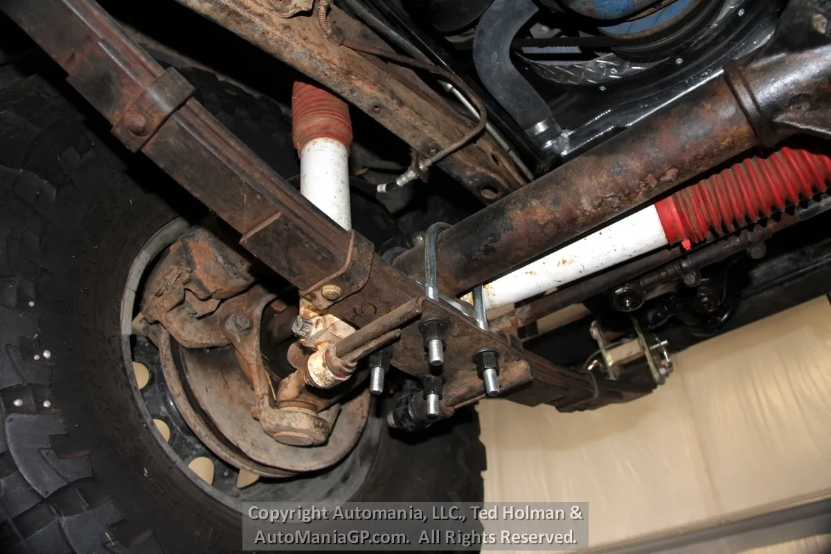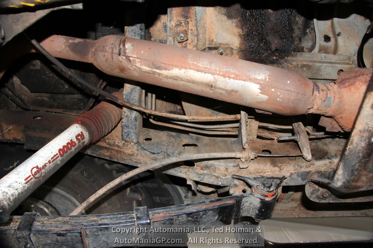 The engine is the AMC 258 6-Cylinder and a 4-Speed Manual Transmission and 2-Speed Transfer Case with 2H and Neutral along with Warn Locking Hubs. Wheels and tires look almost new and 35’s Toyo’s are mounted. The 4WD was checked out here at the shop and everything worked as expected. Nice Hubs!