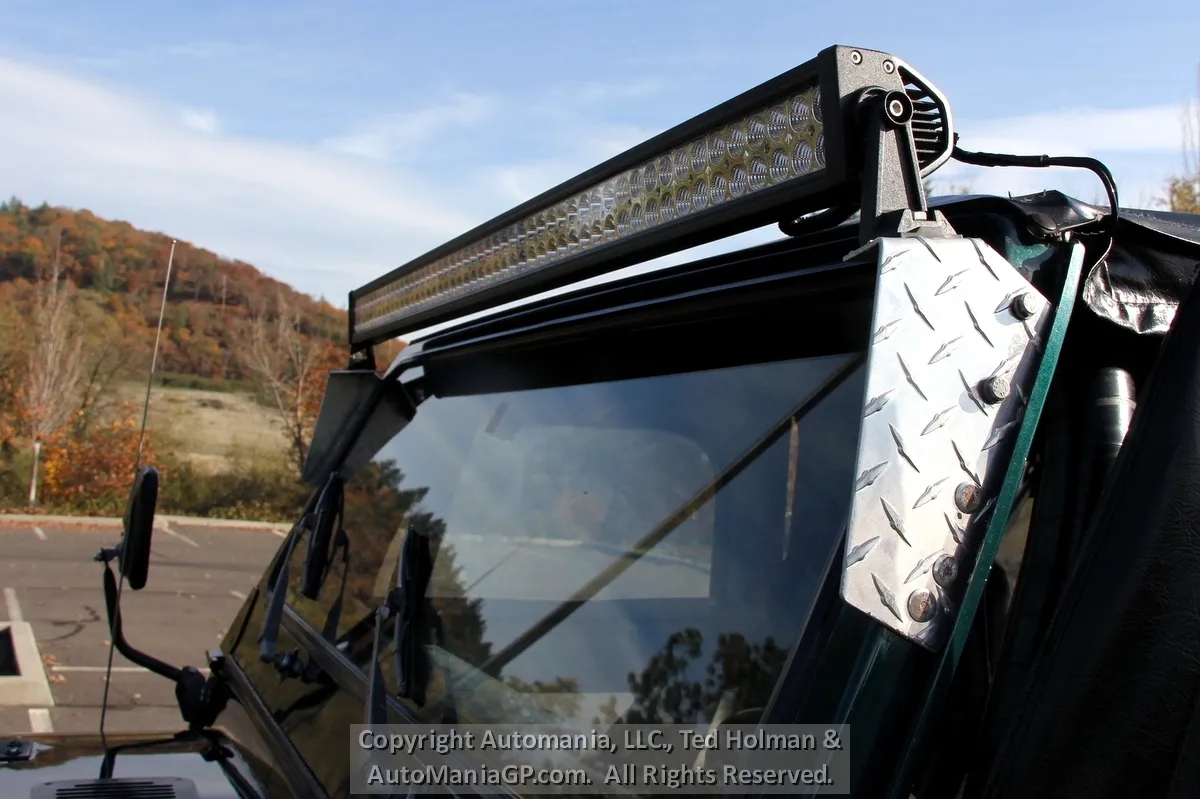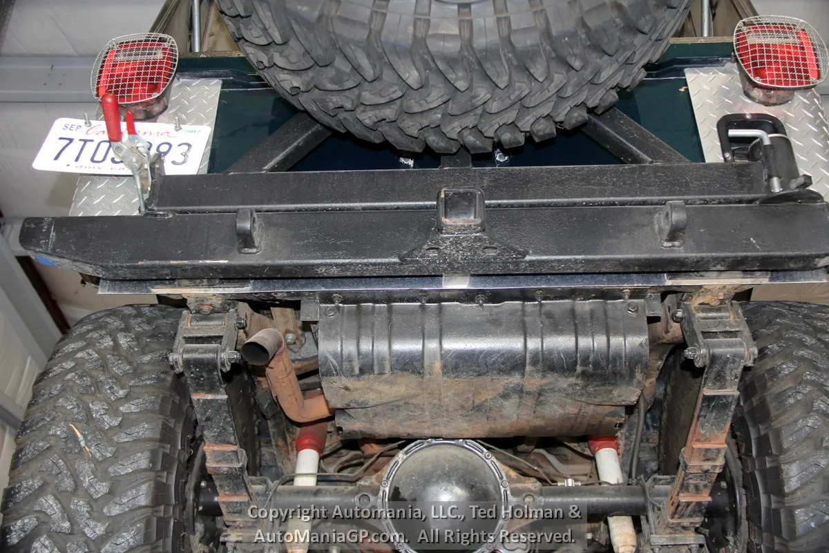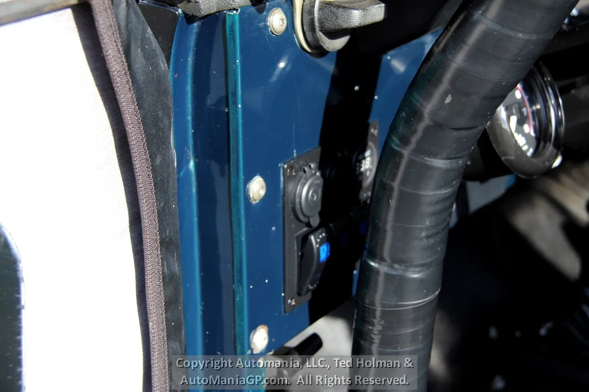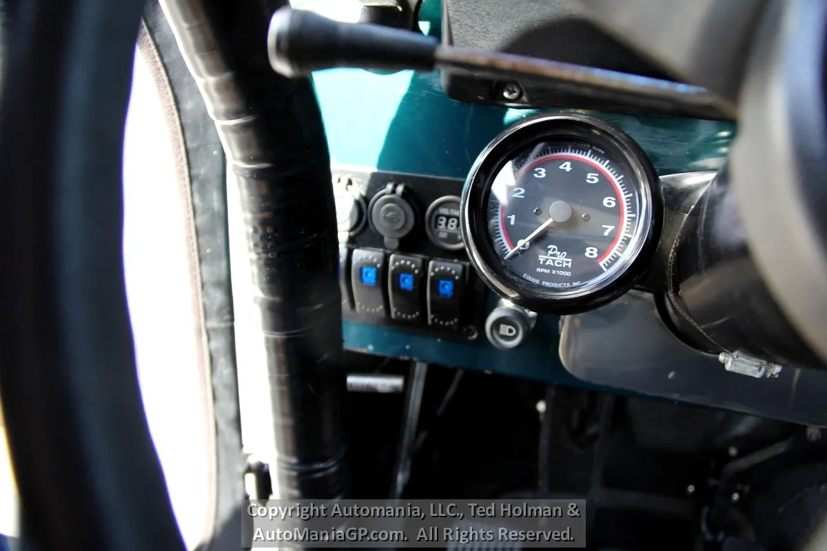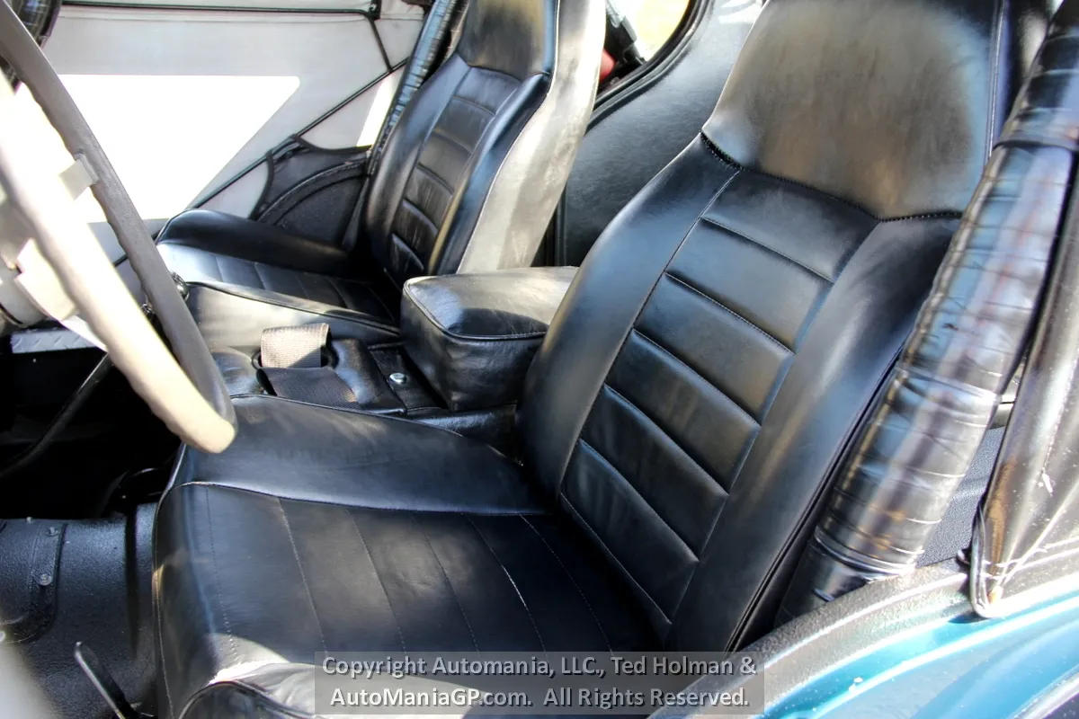 The interior is a bit tight because of the full cage roll bar. Seats are not bad but the driver’s side has a split seam and minor tear on the left edge. A set of high end Simpson Safety Belts take care of the two front passengers and the back seat is in good order. A full set of gauges and Off-Road Lights were added back in the day.