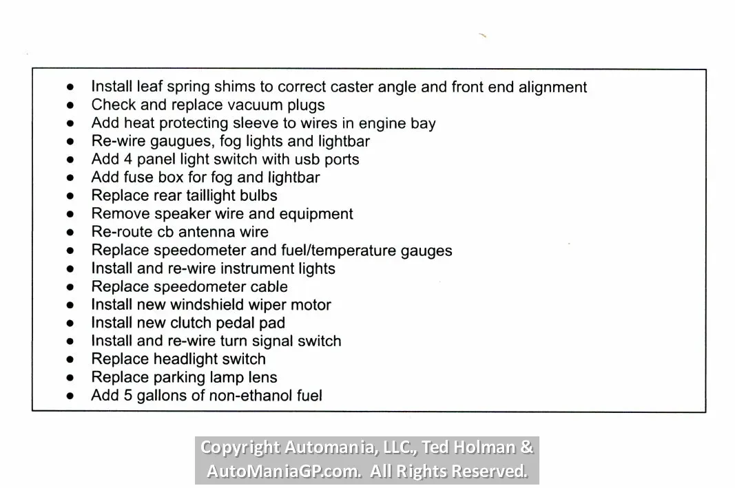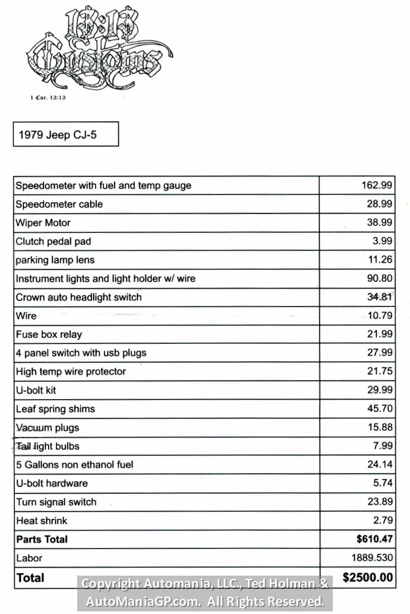 The Jeep comes from a long time customer who purchased it about eight years ago and then never drove it. His complaint was with the way it drove compared to his Toyota Camry. I drove it around town and it drives like every CJ I have been around, in fact I thought it did great (for a CJ5 with 35’s). Mechanically everything felt right with no rattles or pulling. The only thing I noted was the top and doors have seen better days. The owner has just spent $2,500 in service with the receipts on the webpage.